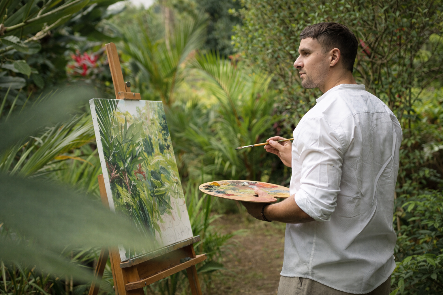 Music-focused retreats take place at Aya Studios, one of Bali’s premier creative facilities, where you’ll develop production skills in a world-class environment. Alongside this, our fine art retreats unfold within the inspiring surroundings of Bali Palms, offering space for painting, drawing, and expressive visual practice in a tranquil tropical setting.